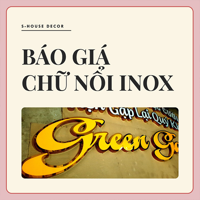 Báo giá chữ nổi inox là một trong những yếu tố quan trọng khi bạn quyết định làm biển hiệu quảng cáo bằng chữ nổi inox. Chữ nổi inox là một loại biển hiệu quảng cáo sang trọng, bắt mắt và bền bỉ. Để có được một biển hiệu quảng cáo bằng chữ nổi inox đẹp và chất lượng, bạn cần chọn một địa chỉ thi công uy tín và giá tốt. S-House Decor là một trong những địa chỉ đó, với nhiều năm kinh nghiệm và uy tín trong lĩnh vực quảng cáo. Hãy liên hệ với chúng tôi ngay hôm nay để được tư vấn và báo giá chữ nổi inox tốt nhất.
