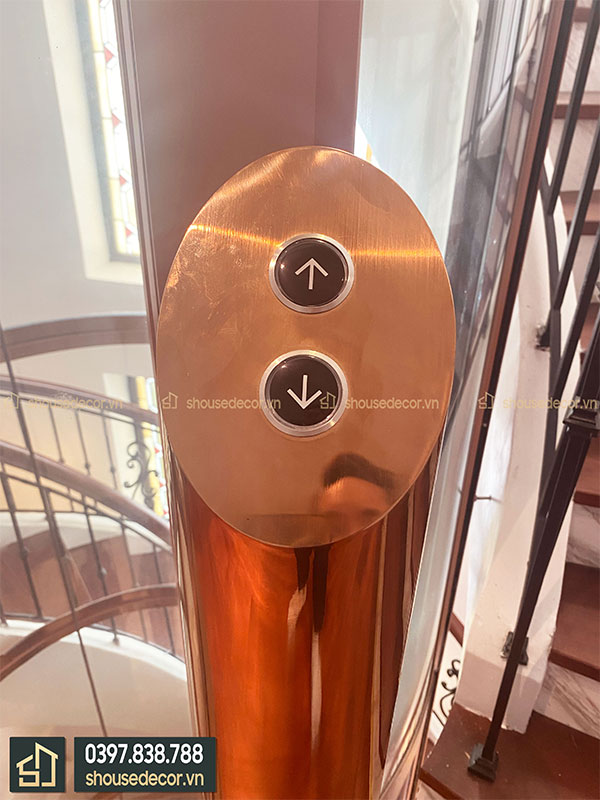 Các chi tiết nhỏ hơn như thanh cầm, biển báo,... cũng được bọc ốp rất cẩn thận, giúp cho nó được hòa nhập với tổng thể thang máy kính và chống chịu cao, lâu bền với thời gian