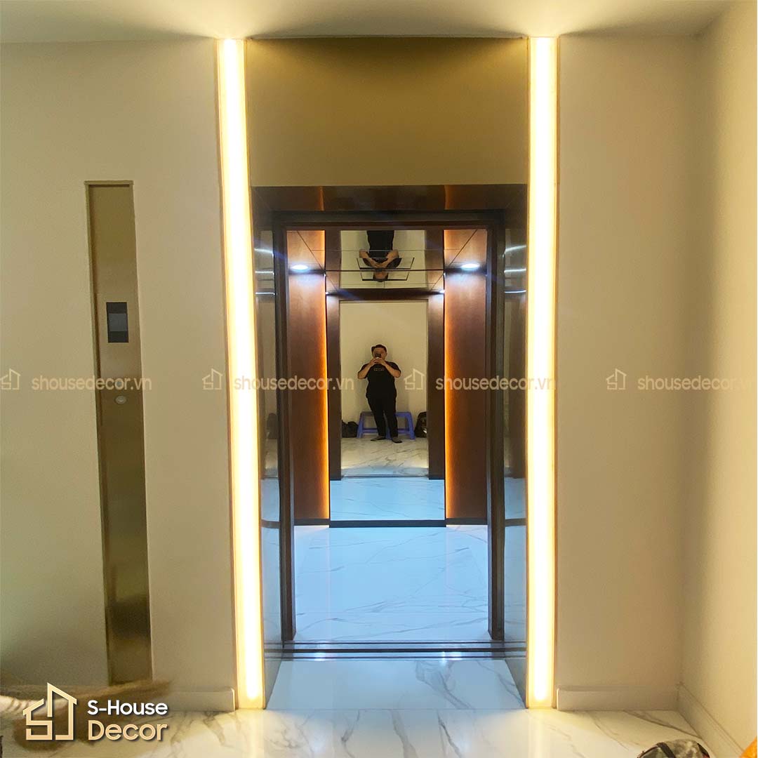 - Đồng bộ thiết kế: Khung bao tạo nên đường viền rõ nét, kết nối liền mạch giữa vách thang máy và nội thất công trình.