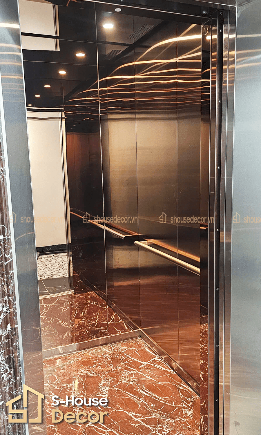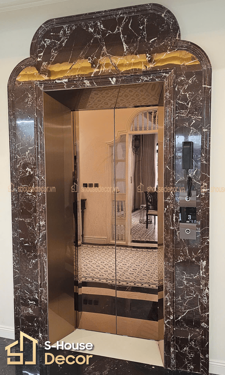 Liên hệ S-House - Đơn vị thi công ốp khung bao bản rộng thang máy uy tín